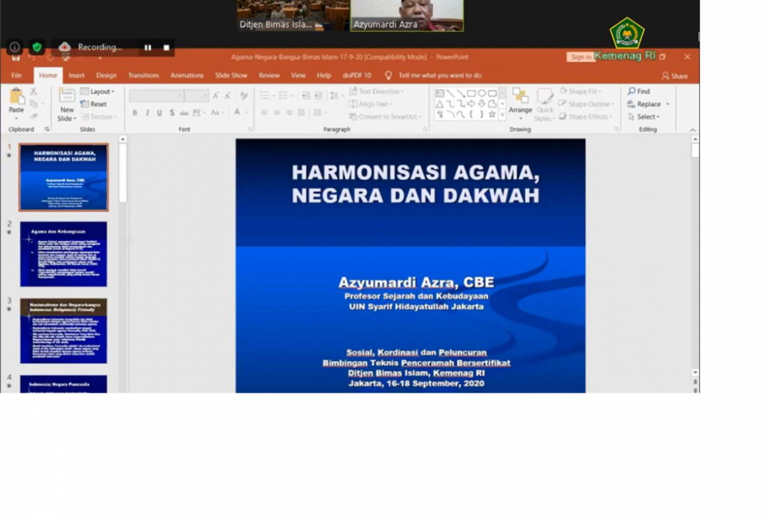 Peningkatan kapabilitas dan kompetensi menurut Azra sukses suatu bentuk campur tangan negara dalam kehidupan agama, melainkan bentuk peningkatan pelayanan keagamaan bagi umat. “Peningkatan kompetensi ini kan memang kewajiban kita semua. Saya kira ikhtiar Bimas Islam untuk melakukan peningkatan kompetensi dan kapabilitas penceramah ini sangat baik. Saya dukung itu, ”kata Azra yang menyampaikan materi tentang” Harmonisasi Negara, Agama, dan Dakwah “.
