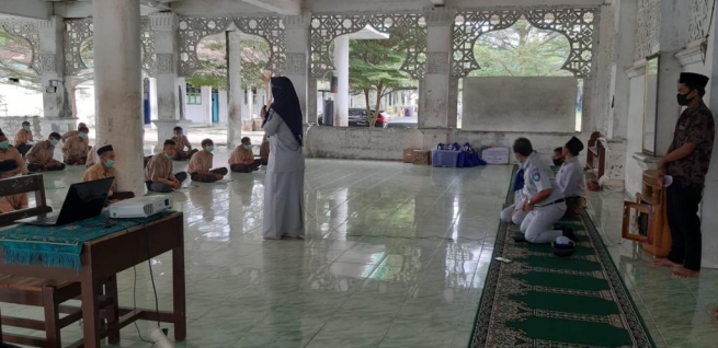 Pemberian bantuan Bina Lingkungan dan Jasa Raharja Mengajar dilakukan dengan protokol kesehatan sesuai instruksi pemerintah dengan penggunaan masker, face shield, cuci tangan serta jaga jarak antara siswa satu dengan yang lainnya.