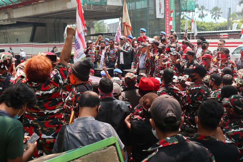 Perwakilan unjuk rasa hanya dibatasi 5 orang karena terbatas tempat dan memeperhatikan social distance. Dalam penyampaiannya perwakilan unjuk rasa menyampaikan beberapa hal terkait dengan pengesahan badan hukum Laskar Merah Putih yang sampai sekarang belum disahkan oleh Ditjen AHU. “Kita sudah serahkan semua data terkait pengesahan Badan Hukum LMP dan harusnya segera di sahkan” kata Efri Manurung sebagai ketua LMP.