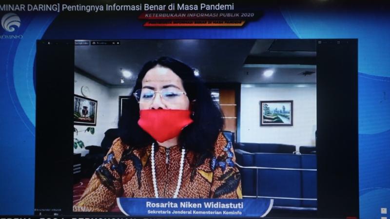 Dalam pemaparannya, Sekjen Niken menyatakan selama masa pandemi Covid-19, Kementerian Kominfo sebagai Government Public Relations menyediakan informasi seputar Covid-19 yang terus diperbaharui setiap hari. Informasi itu disebarluaskan melalui seluruh kanal informasi Kementerian Kominfo baik website dan media sosial seperti Facebook, Instagram, Twitter, Youtube sampai TikTok.