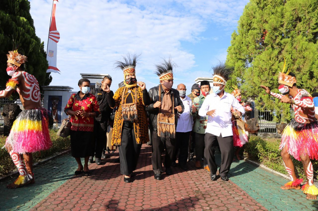 Suarapemerintah.id – Menteri Agama Fachrul Razi melakukan kunjungan kerja ke Bumi Cendrawasih Papua, hari ini, Kamis (03/09). Menag didampingi Penasihat Dharma Wanita Persatuan (DWP) Kemenag RI Anni Fachrul Razi tiba di bandara Sentani pukul 07.10 waktu setempat. Tiba di bandara Sentani, Menag dipasangi topi adat Papua diiringi tarian tradisional selamat datang yang dibawakan delapan orang pemuda Papua.