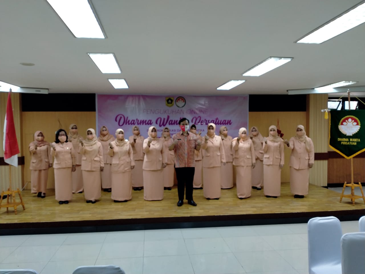 Suarapemerintah.id – Pengurus Dharma Wanita Persatuan (DWP) Satuan Kerja Perangkat Daerah (SKPD) Dinas Komunikasi dan Informatika (Diskominfo) Kabupaten Bogor, ikuti pengukuhan DWP Tingkat Kabupaten Bogor masa bhakti 2019-2024 tingkat Kabupaten Bogor secara online, di Aula Diskominfo Kabupaten Bogor, Kamis (12/11).