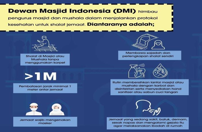 Dalam surat tersebut, DMI meminta agar para jemaah dapat melakukan protokol kesehatan ketika beraktivitas di dalam masjid. Hal itu guna mengurangi kemungkinan penyebaran virus corona.
