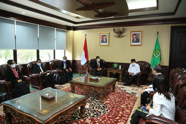 Kepada Menag, I Gusti Ngurah Sudiana melaporkan bahwa setelah alih status, proses penyusunan statuta dan ortaker UHN sudah selesai.