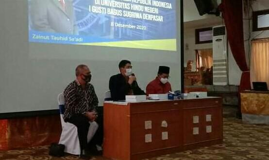“Selamat kepada seluruh keluarga besar UHN IGB Sugriwa, dengan syarat yang memadai dan memenuhi kriteria, semoga dengan bertransformasi dari Institut menjadi Universitas, akan semakin lebih baik lagi, baik membangun kehidupan keagamanan dan kerukunan di Bali,” harap Wamenag saat memberikan pembinaan civitas akademika UHN di Denpasar, Selasa (08/12).