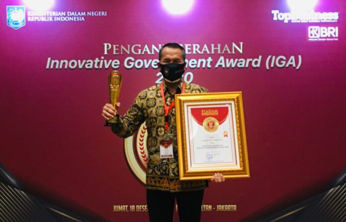 Penghargaan tersebut diberikan Menteri Dalam Negeri, Muhammad Tito Karnavian kepada Bupati Wonogiri Joko Sutopo, dalam malam penganugerahan Innovative Government Award (IGA) 2020 di The Sultan Hotel and Residence Jakarta, Jumat (18/12/2020).