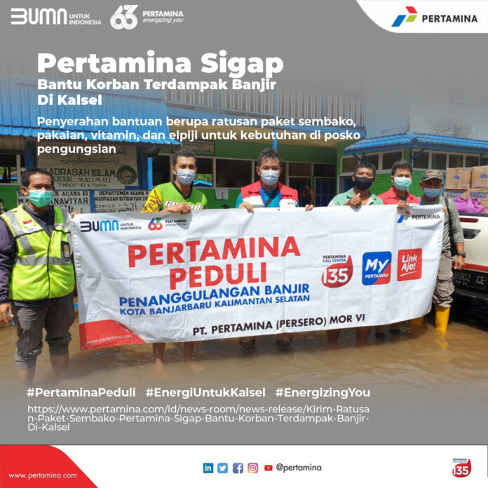 SuaraPemerintah.id – Pertamina sigap bantu korban banjir yang terdampak terutama di sekitar ring 1 wilayah kerja yaitu di sekitar wilayah TBBM Banjarmasin di Kota Banjarmasin, di sekitar DPPU Syamsudin Noor di Kabupaten Banjarbaru, dan posko pengungsian terdekat pada Sabtu, (16/1).