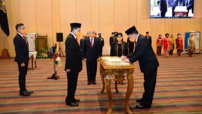 Pelantikan dan serah terima jabatan berlangsung di kantor Kementerian Perhubungan, Kamis (4/2).