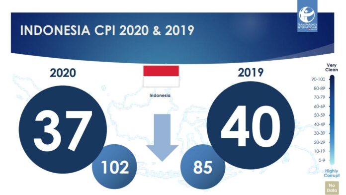 Berdasarkan data terbaru, nilai IPK Indonesia turun dari 40 pada 2019, menjadi 37 pada 2020. Peringkat Indonesia ikut turun dari 85 ke 102. Nilai itu tentu tidak lepas dari kualitas sumber daya manusia (SDM) yang bekerja di sektor pemerintahan.