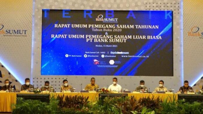 Hal tersebut dilaporkan dalam Rapat Umum Pemegang Saham Tahunan (RUPS) sekaligus Rapat Umum Pemegang Saham Luar Biasa (RUPS-LB) di Kantor Pusat Bank Sumut, Senin (15/3/2021).