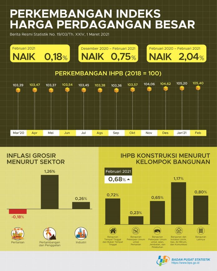 Februari 2021, Indeks Harga Perdagangan Besar Naik 0,18%
