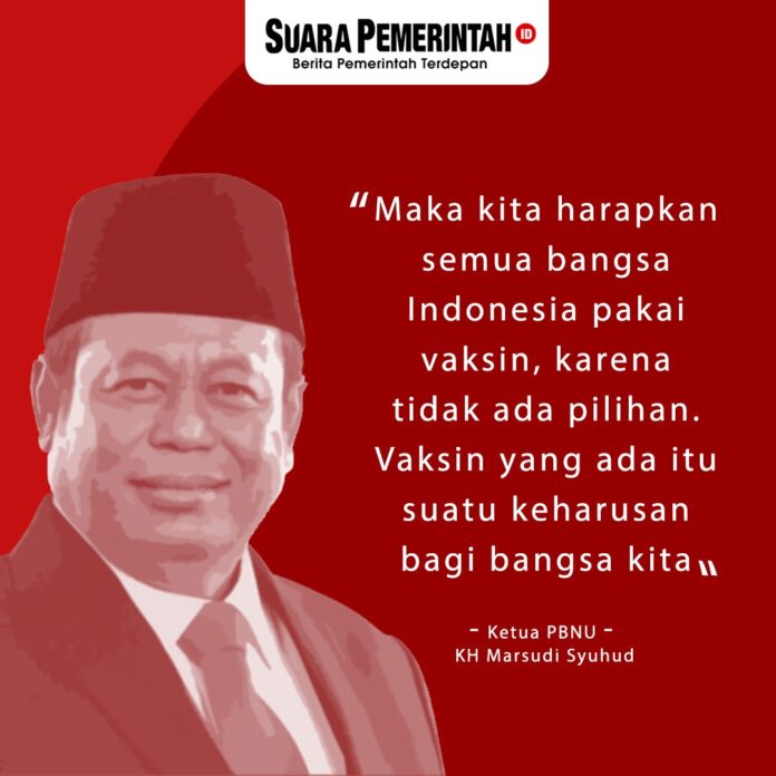 SuaraPemerintah.id – Pengurus Besar Nahdlatul Ulama (PBNU) mengharapkan semua masyarakat Indonesia bersedia mengikuti program vaksinasi COVID-19. Dalam hal ini Ketua PBNU KH Marsudi Syuhud menyampaikan bahwa vaksin bukan untuk kepentingan satu atau dua orang, tapi seluruh rakyat Indonesia.