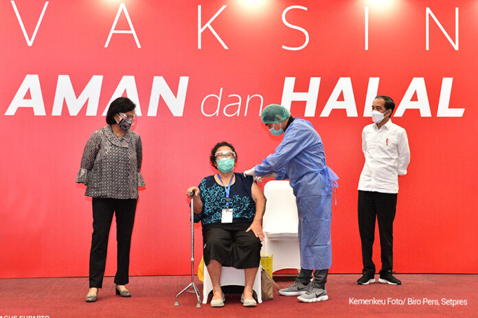 Hal ini diungkapkan Menteri Keuangan (Menkeu) Sri Mulyani Indrawati saat mendampingi Presiden Republik Indonesia meninjau pelaksanaan vaksinasi para pelaku perbankan dan pasar modal, di Gedung Bursa Efek Indonesia pada Rabu (31/03).
