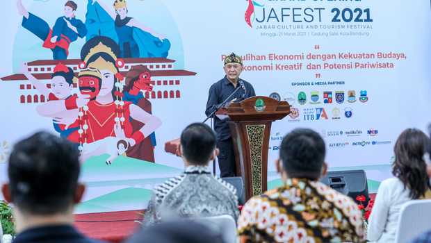 “Kami sangat mendukung sekali acara Jabar Culture and Tourism Festival karena ini sangat penting dalam dua hal, yaitu pemulihan ekonomi nasional yang harus digerakkan pariwisatanya,” kata Teten.