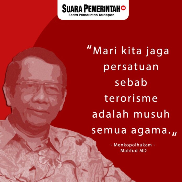 “Mari kita jaga persatuan sebab terorisme adalah musuh semua agama,” kata Mahfud mengakhiri pernyataan resmi pemerintah yang disampaikan kepada publik pada jumpa pers.