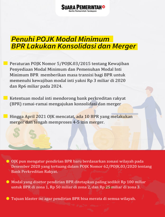 - Hingga April 2021 OJK mencatat, ada 10 BPR yang melakukan merger dan tengah memproses 4-5 izin merger.