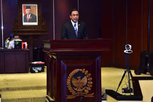 SuaraPemerintah.id – Ketua Badan Pemeriksa Keuangan (BPK), Agung Firman Sampurna menyerahkan secara Laporan Hasil Pemeriksaan (LHP) atas Laporan Keuangan Pemerintah Pusat (LKPP) dan Ikhtisar Hasil Pemeriksaan Semester (IHPS) II Tahun 2020 kepada Ketua Dewan Perwakilan Daerah (DPD RI), La Nyalla Mattalitti dalam Sidang Paripurna DPD di gedung Nusantara V, Jakarta, Kamis (24/06).