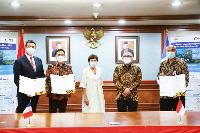 Turut hadir Delegasi Perancis pada kesempatan ini Duta Besar Perancis Olivier Chambard, Cabinet Director Xavier Ducept, Diplomatic Counsellor Madame Alexandra Bonnet, Counsellor of Cooperation Stephane Dovert, Director of IRD Indonesia Edmond Dounias, Director of AFD Indonesia Emmanuel Baudran, AFD Senior program Officer Martin Leménager dan AFD Jakarta Communication Officer Claudhia Aprilia dan Interpreter Embassy of France Dominique Roubert