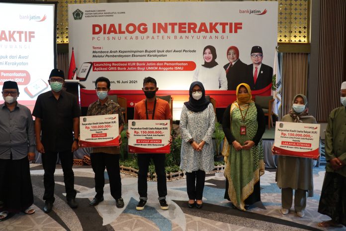 SuaraPemerintah.id – PT. Bank Pembangunan Daerah Jawa Timur Tbk. (bankjatim) terus melakukan langkah proaktif dalam membangkitkan perekenomian Jawa Timur di masa pandemi Covid-19 Langkah tersebut salah satunya ditempuh dengan memberikan Kredit Usaha Rakyat (KUR) kepada tiga pelaku Usaha Mikro, Kecil, dan Menengah (UMKM) binaan ISNU (Ikatan Sarjana Nahdlatul Ulama) Banyuwangi pada Rabu (16/06).