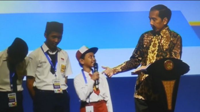 “Anak-anakku, anak-anakku semua masa depan Indonesia. Harus semangat belajar, riang gembira, rajin beribadah, jangan lupa berdoa kepada Allah Swt. berdoa untuk memohon perlindungan bagi kita semua, bagi bangsa Indonesia,” kata Jokowi.