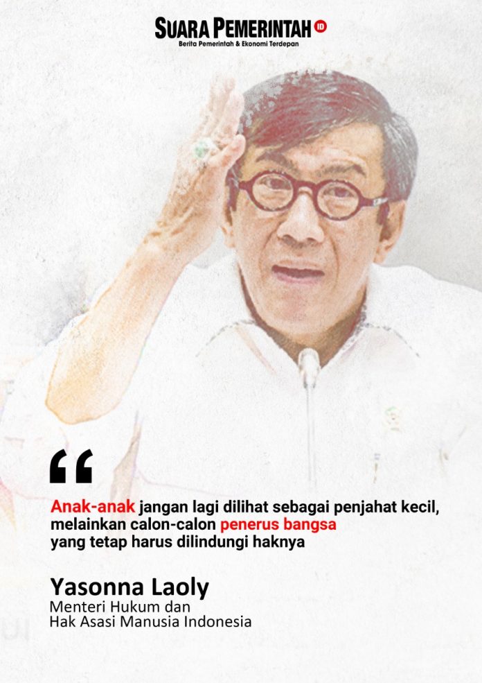 SuaraPemerintah.ID– Menteri Hukum dan Hak Asasi Manusia RI Yasonna Laoly mengimbau masyarakat Indonesia jagan melihat kenakalan anak-anak sebagai penjahat kecil. Namun, harus dibimbing, diarahkan dan diberi perlindungan