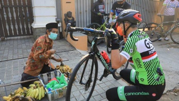 “Setiap saya lewati itu dia posisinya tidur di bangku panjang karena tidak ada pembeli. Saya datangi, karena saya pakai masker dan pakai helm dia tidak tahu siapa saya. Lalu saya beli dagangannya banyak sekali, dia bingung,” ujar Ganjar Pranowo.