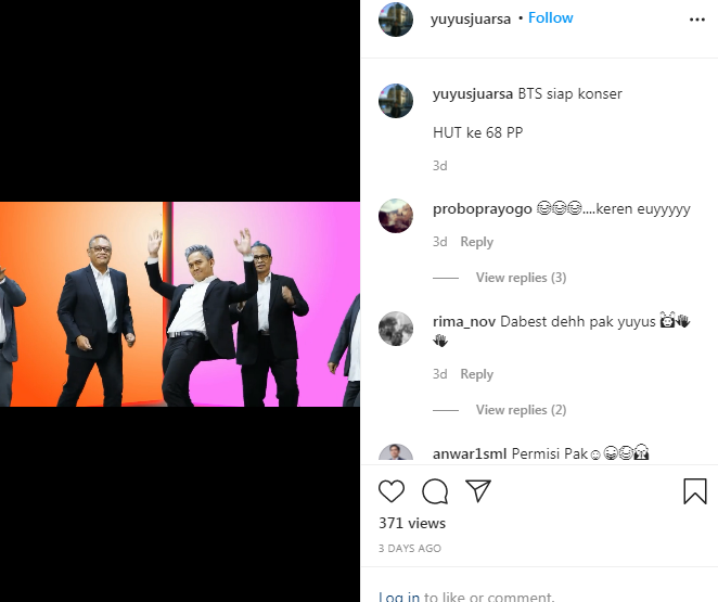 Beberapa netizen berkomentar dalam IG Yuyus, di antaranya, @proboprayogo: “… keren euyyyy”. @rima_nov, “Dabest dehh pak yuyus,”. @adtnrzmn,”totalitas banget pak…”. @izzah_hamadah,”hahahaahaha.. keren yuuuus. Kalah BTS,”. @ria.simarmata, “Pak @yuyusjuarsa kereeennn Pak…tsadiissss,,,keceeee bgt sih pak,”.
