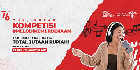 SuaraPemerintah.ID– Merayakan hari ulang tahun (HUT) ke-76 Republik Indonesia di rumah saja bisa tetap meriah dengan mengikuti kompetisi #MelodiKemerdekaan, terlebih jika jadi juara dan mendapatkan hadiah total jutaan rupiah.