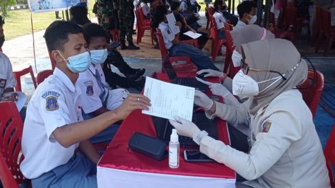 Sedangkan, tim vaksinator Puskesmas Muara Tami, Anselma menerangkan, bahwa sebanyak 10 tenaga kesehatan dikerahkan untuk melayani vaksinasi dosis pertama dan vaksinasi dosis kedua bagi masyarakat dan pelajar.