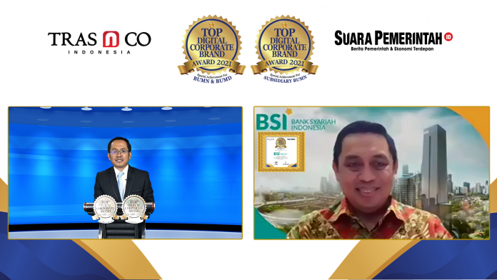 SuaraPemerintah.ID-Bank Syariah Indonesia (BSI) raih penghargaan raih penghargaan Top Digital Corporate Brand Award 2021, Special Achievement for Subsidiary BUMN Special Achievement for BUMN-BUMD. Penyerahan penghargaan dilangsungkan secara virtual melalui e-A warding Ceremony Top Digital Corporate Brand Award 2021 pada Rabu 29 September 2021. Dihadiri ratusan peserta dari berbagai instansi pemerintah, BUMN, dan BUMD di seluruh Indonesia.