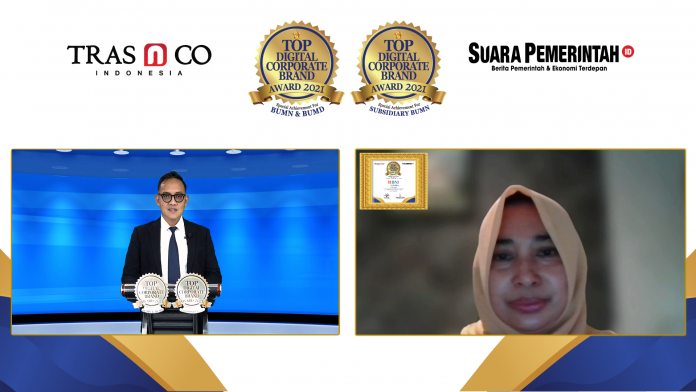 Selanjutnya berdasarkan index riset digital tersebut, SuaraPemerintah.ID sebagai media berita pemerintah dan ekonomi terdepan dan TRAS N CO Indonesia, memberikan penghargaan kepada perusahaan BUMN, BUMD dan anak usaha BUMN melalui Top Digital Corporate Brand Award 2021.