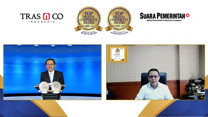Selanjutnya berdasarkan index riset digital tersebut, SuaraPemerintah.ID sebagai media berita pemerintah dan ekonomi terdepan dan TRAS N CO Indonesia, memberikan penghargaan kepada perusahaan BUMN, BUMD dan anak usaha BUMN melalui Top Digital Corporate Brand Award 2021.