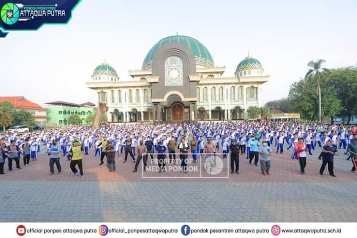 Giat dilaksanakan bersamaan dengan senam pagi massal untuk meningkatkan imun di masa pandemi Covid-19 ini diikuti oleh para guru, santri dan seluruh staf di lingkungan pesantren yang didirikan Pahlawan Nasional asal Bekasi KH. Noer Ali.