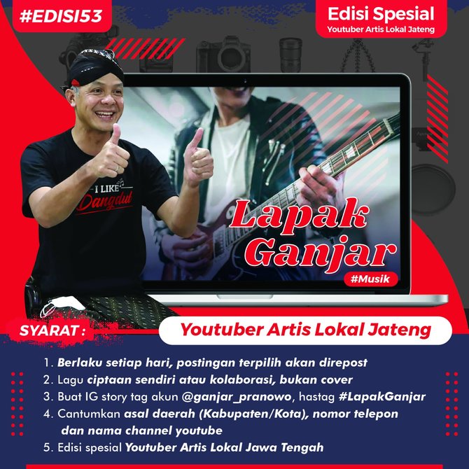 “Tapi musisi pendatang baru akan kesulitan karena subscriber dan followernya masih sedikit, maka muncul ide Lapak Ganjar Musik sehingga bisa membantu karya teman-teman seniman lebih dikenal publik,” tutur Ganjar.