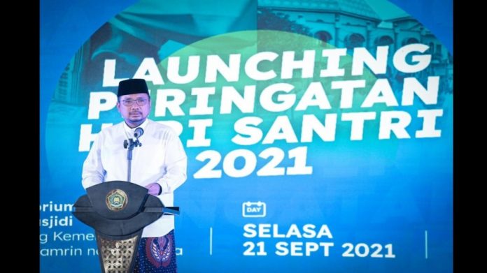 Pengakuan atas besarnya kontribusi santri tersebut dikatakan Menag Yaqut saat meluncurkan tema dan logo peringatan Hari Santri 2021 di Gedung Kementerian Agama (Kemenag) Jalan Thamrin, Jakarta Pusat, Selasa (21/9/21).
