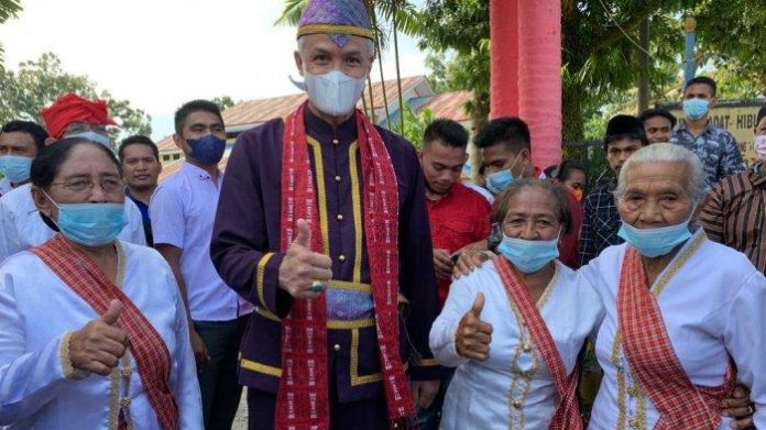 “Oooo ooooo oooo. Gunung dan tanjung-tanjung jadi saksi bagaimana mimpi kami tuntas. Laut dan selat bukan hambatan bahwa bapak (Ganjar) adalah keluarga kami. Siapapun yang sudah masuk ke Hibualamo tidak disediakan pintu keluar. Dan mulai saat ini bapak sudah ada di dalamnya,” kata Jesayas, Sabtu(16/10/21).