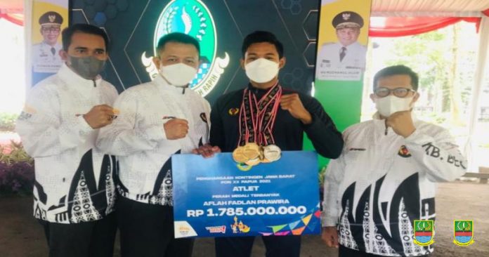 “Bonus itu diserahkan Gubernur Jawa Barat Ridwan Kamil dalam acara Pengukuhan dan Pelepasan Kontingen Peparnas XVI 2021 Papua,” ujar Plt Kadispora Kabupaten Bekasi, Juniardiana Rosatijawan pada Kamis (28/10/2021).