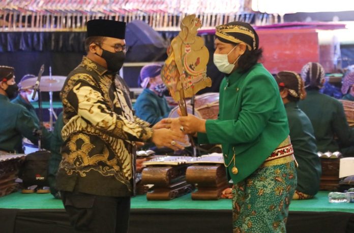 “Dalang Ki Gondong Al-Frustasi ini, Saya temukan di daerah Rembang. Ia bersemayam di tengah hutan, dalang muda, yang memiliki talenta yang tidak banyak kita temukan sekarang,” tutur Menag Yaqut, saat didampingi istrinya, Hj Eny Yaqut Cholil.
