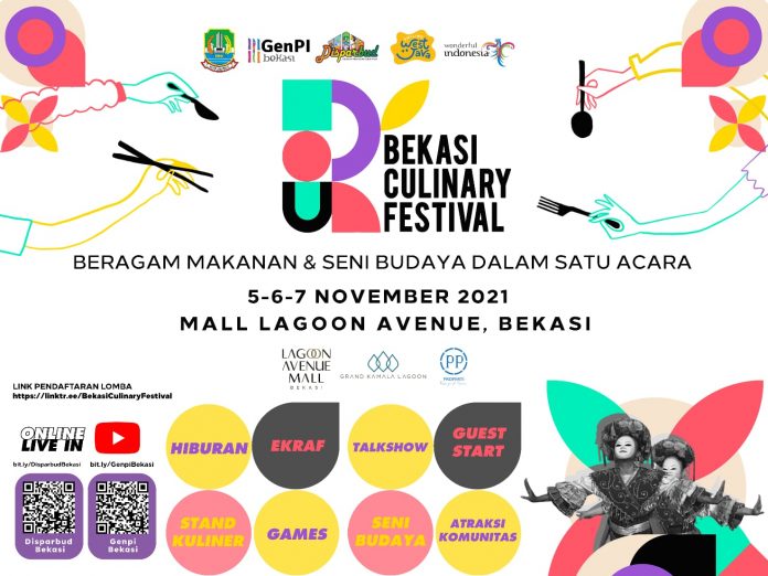 SuaraPemerintah.ID –Â Pemerintah Kota Bekasi melalui Dinas Pariwisata dan Kebudayaan (Disparbud) Kota Bekasi dan Generasi Pesona Indonesia (GenPI) Kota Bekasi menggelar event Bekasi Culinary Festival (BCF) bertepatan pada HUT GenPi ke-3. BCF akan diselenggarakan mulai dari tanggal 05 sampai dengan 07 November 2021 bertempat di Atrium Lagoon Avenue Mall Kota Bekasi.