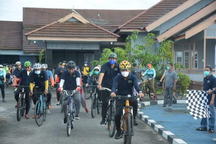 SuaraPemerintah.ID-Dalam momen peringatan Hari Kesehatan Nasional (HKN) ke-57, Bupati Sambas, Satono, mengimbau masyarakat untuk terus menjaga kesehatan jasmani maupun rohani di masa pandemi Covid-19 dengan berolahraga.