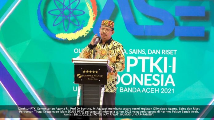 TerasBerita.ID-Kementerian Agama menggelar ajang Olimpiade Agama, Sains dan Riset (OASE) Perguruan Tinggi Keagamaan Islam (PTKI). Helat perdana ini digelar secara hybrid dan dipusatkan di Universitas Islam Negeri (UIN) Ar-Raniry Banda Aceh.