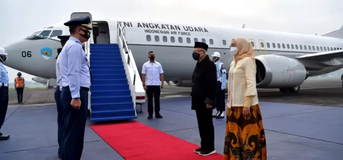 Dalam kunjungannya, Wapres Ma’ruf dan Wury Ma’ruf Amin bersama rombongan terbatas lepas landas dari Pangkalan Udara TNI AU Halim Perdanakusuma Jakarta lepas landas menuju Papua menggunakan Pesawat Boeing 737- 400 TNI AU, pada pukul 06.00 WIB atau 07.00 WITA.