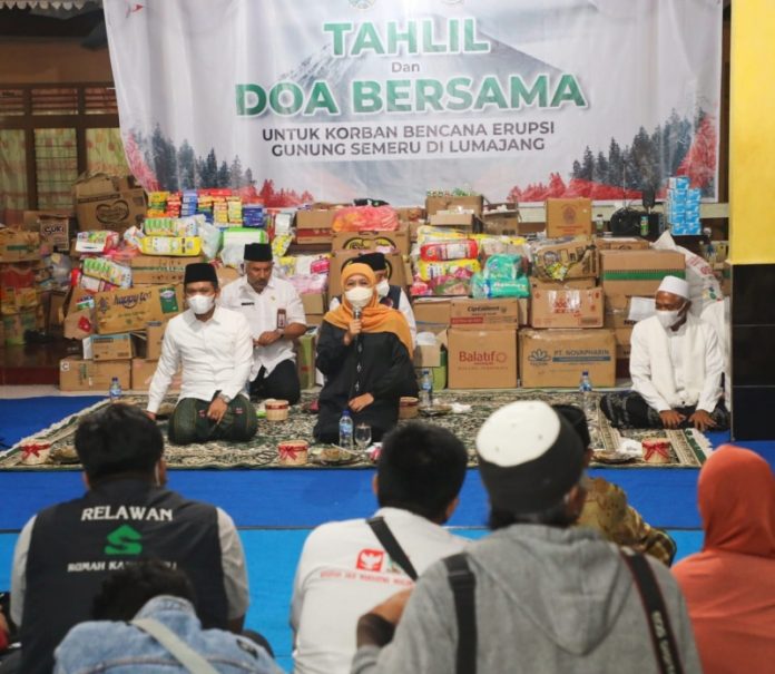 SuaraPemerintah.ID – Gubernur Jawa Timur Khofifah Indar Parawansa menggelar tahlil dan doa bersama untuk korban bencana Awan Panas Guguran (APG) Gunung Semeru, Senin (6/12/21) Malam.