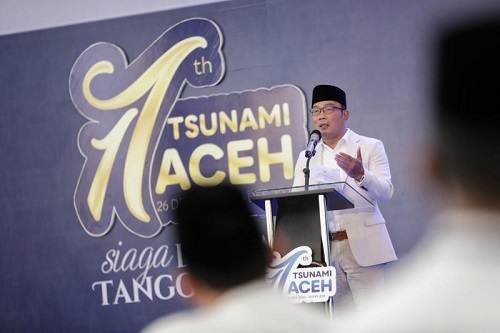 SuaraPemerintah.ID – Gubernur Jawa Barat Mochamad Ridwan Kamil menghadiri peringatan 17 Tahun Tsunami Aceh Siaga Bencana Tangguh Bersama, di area parkir Pelabuhan Penyeberangan Ulee Lheue Kota Banda Aceh, Minggu (26/12/21).