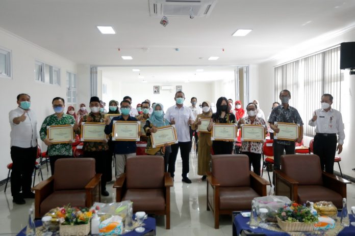 Untuk itu, bertempat di kantor Dinas Kesehatan Kota Semarang, Hendi menyerahkan tanda penghargaan kepada 12 instansi tersebut atas kontribusi yang telah diberikan.