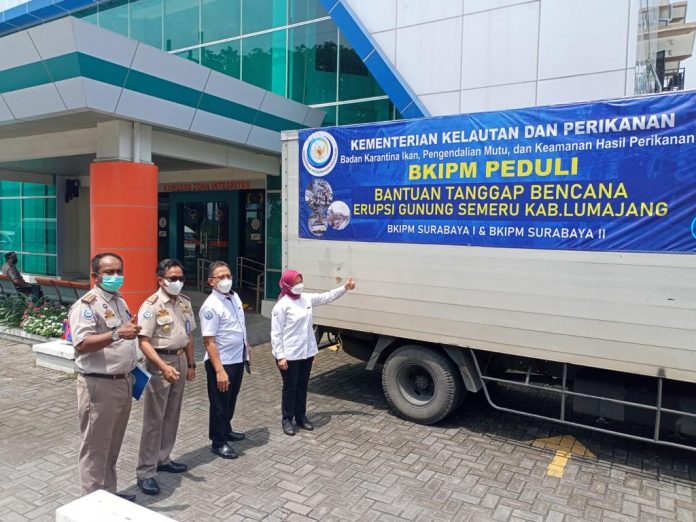 SuaraPemerintah.ID –Â Kementerian Kelautan dan Perikanan (KKP) melakukan aksi solidaritas untuk korban erupsi gunung Semeru di Kabupaten Lumajang, Provinsi Jawa Timur. Diikoordinir langsung oleh Balai Karantina Ikan, Pengendalian Mutu dan Keamanan Hasil Perikanan (Balai KIPM) Surabaya I dan II, KKP membagikan paket pangan dan kebutuhan lainnya untuk masyarakat terdampak bencana. Paket bantuan ini merupakan wujud kepedulian pegawai BKIPM dan pengguna jasa KIPM terhadap para korban erupsi gunung Semeru.