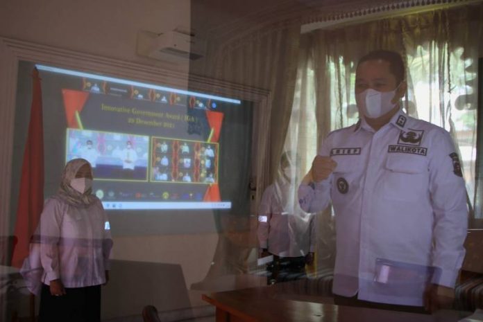 Wali Kota Tangerang H. Arief R. Wismansyah turut hadir dalam kegiatan tersebut secara daring untuk menerima penghargaan sebagai Kota Terinovatif tahun 2021.