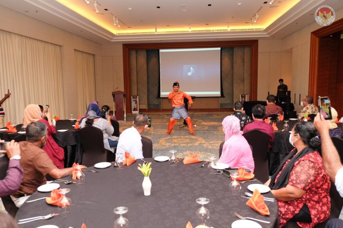 SuaraPemerintah.ID – Dalam rangka merangkul komunitas warga Sri Lanka keturunan Indonesia, KBRI Colombo menyelenggarakan pertunjukan tari dan angklung di Hambantota, Sri Lanka (11/12/2021). Kegiatan yang diselenggarakan dengan protokol kesehatan ini, dihadiri oleh masyarakat Hambantota keturunan Indonesia.