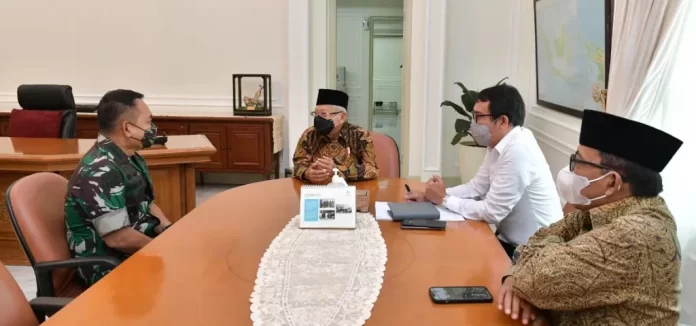 SuaraPemerintah.ID – Wakil Presiden (Wapres) K.H. Ma’ruf Amin menerima kunjungan Kepala Staf Angkatan Darat (KSAD) Jenderal TNI Dudung Abdurachman di Ruang Kerja Istana Wapres, Jakarta Pusat, Rabu (01/12/21).