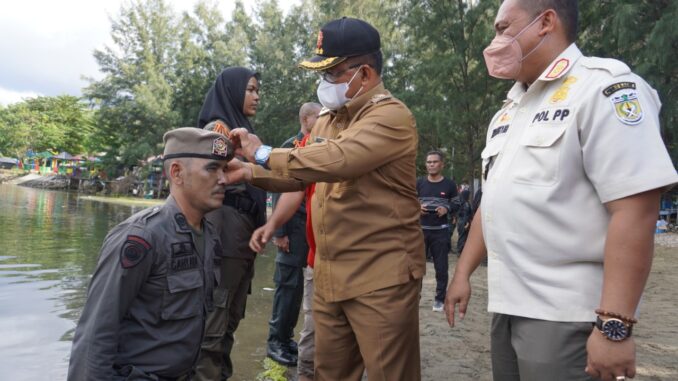SuaraPemerintah.ID – Wali Kota Banda Aceh H. Aminullah Usman, S.E, Ak, MM menyematkan baret bagi 43 orang praja muda baru Satuan Polisi Pamong Praja dan Wilayatul Hisbah (Satpol PP-WH) Kota Banda Aceh di kawasan pantai Ulee Lheue Kecamatan Meuraksa Kota Banda Aceh, Jumat (14/12/2021).